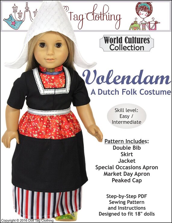 Volendam Dutch Girl Ensemble Pdf Sewing Pattern For 18 Inch Etsy